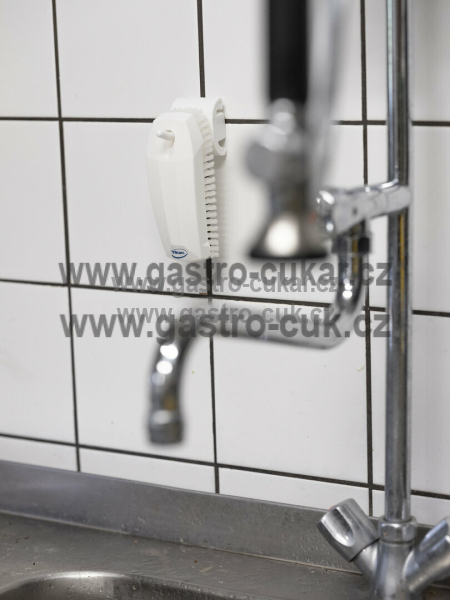 - Nosnost: Háček je konstruován tak, aby unesl produkty s hmotností až 3 kg, což zahrnuje různé čisticí nástroje, ruční utěrky a další předměty.