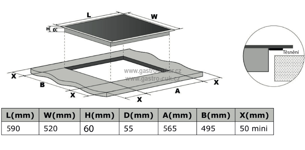 - Rozměry pro vestavbu ŠxH– 565 x 495 mm