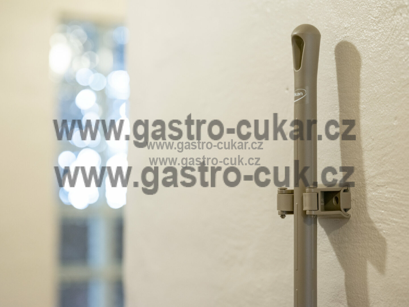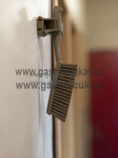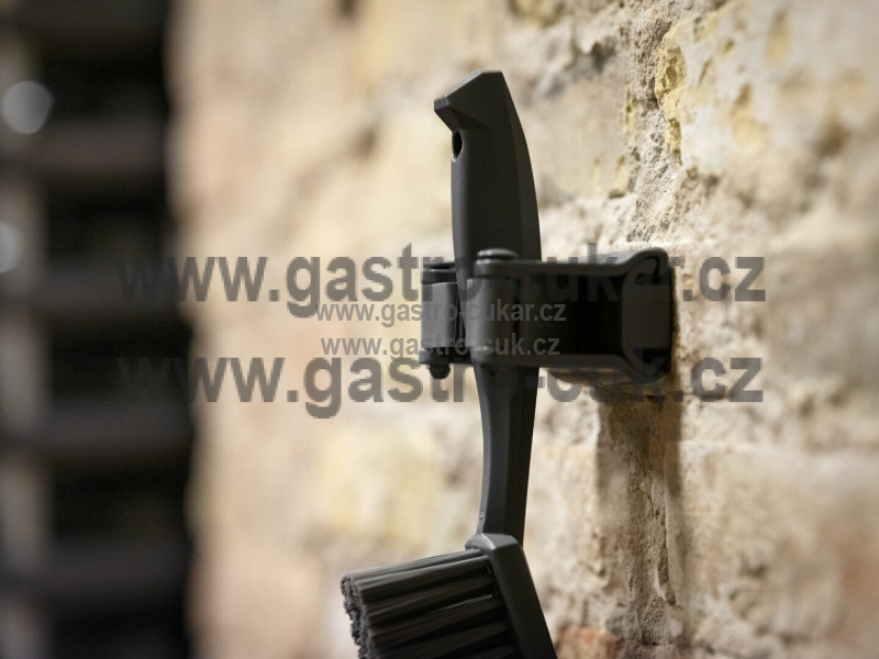 - Funkce: Svorka slouží k upevnění na nástěnný držák a umožňuje bezpečné uchycení čisticích nástrojů a potřeb.